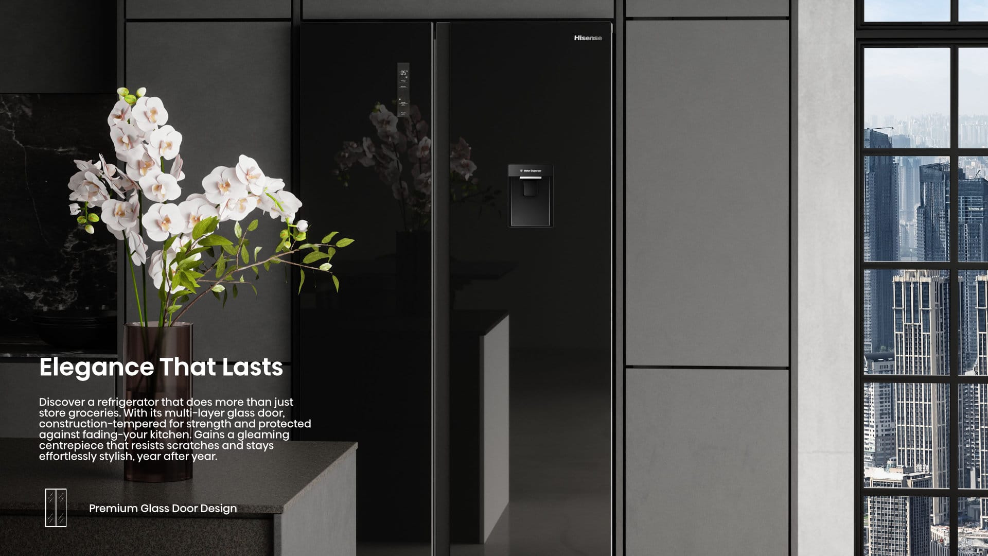 The Hisense REF558DR Black Mirror Glass Door Refrigerator is the ideal combination of style and performance. It keeps food fresh, provides instant access to cold water, and adds a touch of luxury to your kitchen. Whether for family use or entertaining guests, this refrigerator enhances your everyday living experience with elegance and efficiency.